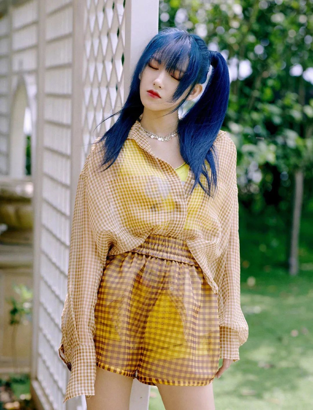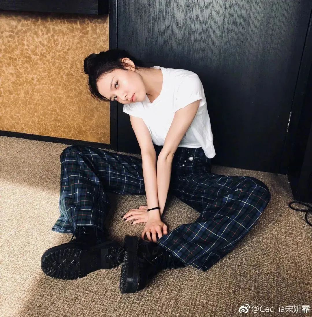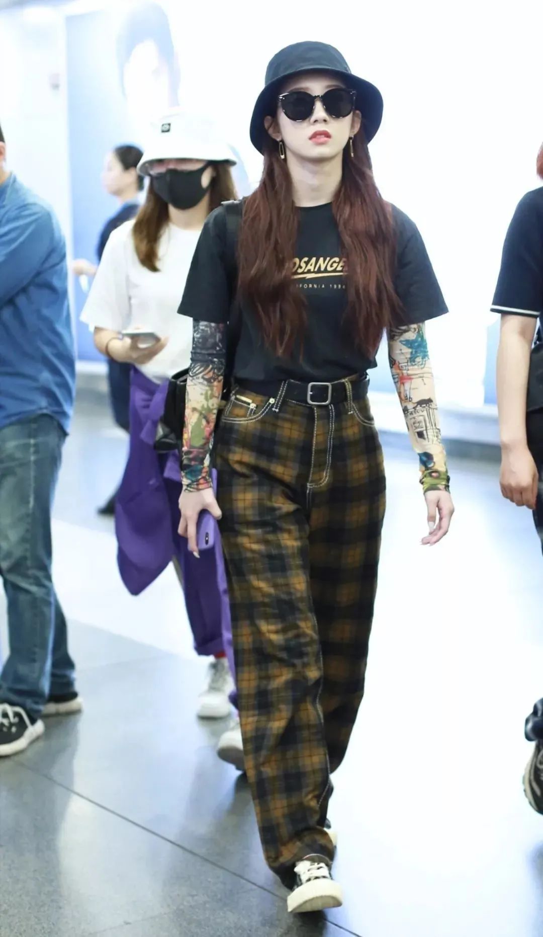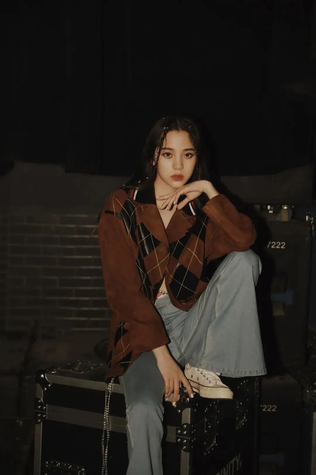 入秋买外套,不必买很厚重的,可以参考娜比,把格纹衬衫当外套来穿,搭配阔腿裤牛仔裤,又甜又飒。