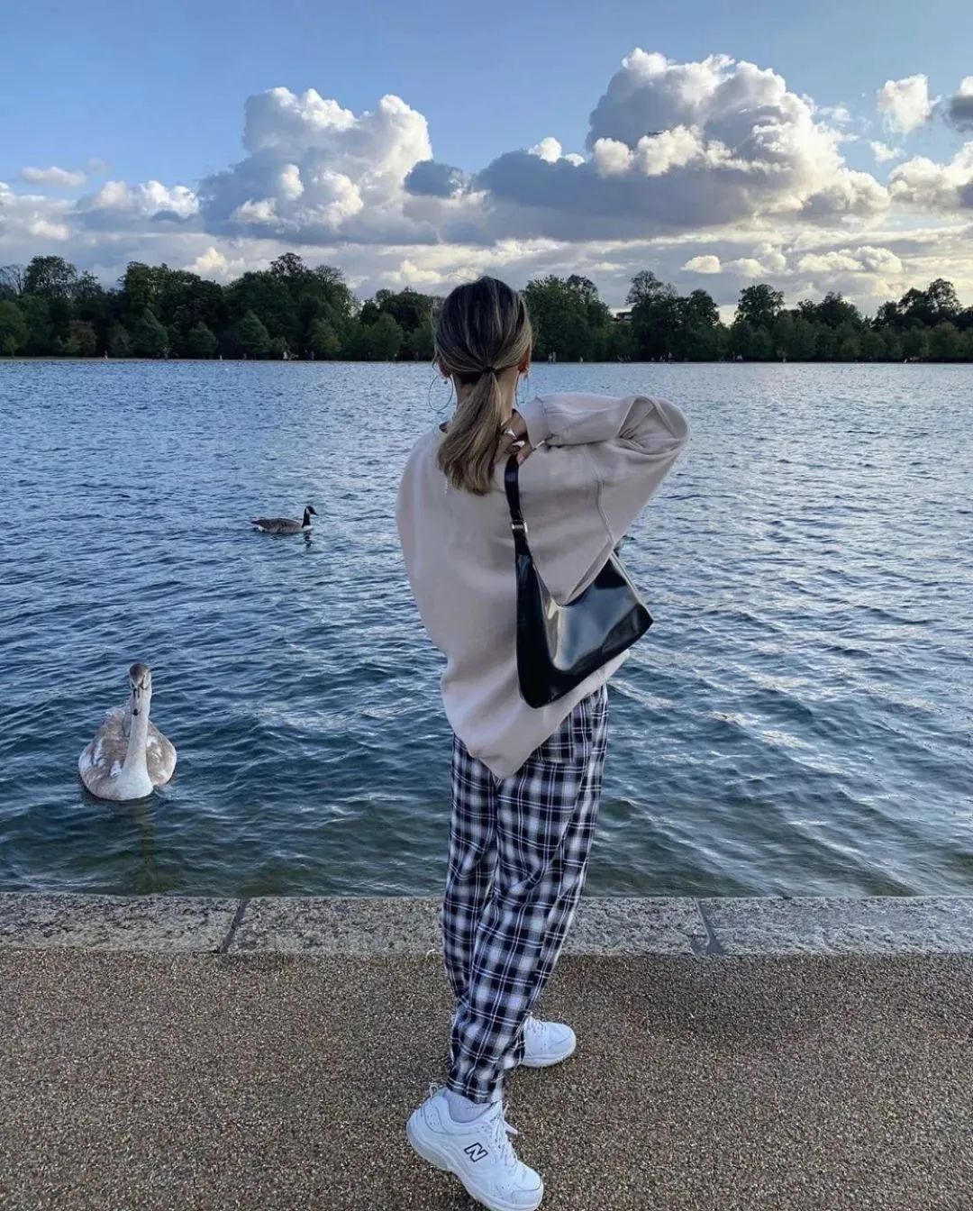 格纹裤显腿长、遮肉腿、穿着舒服、还时髦