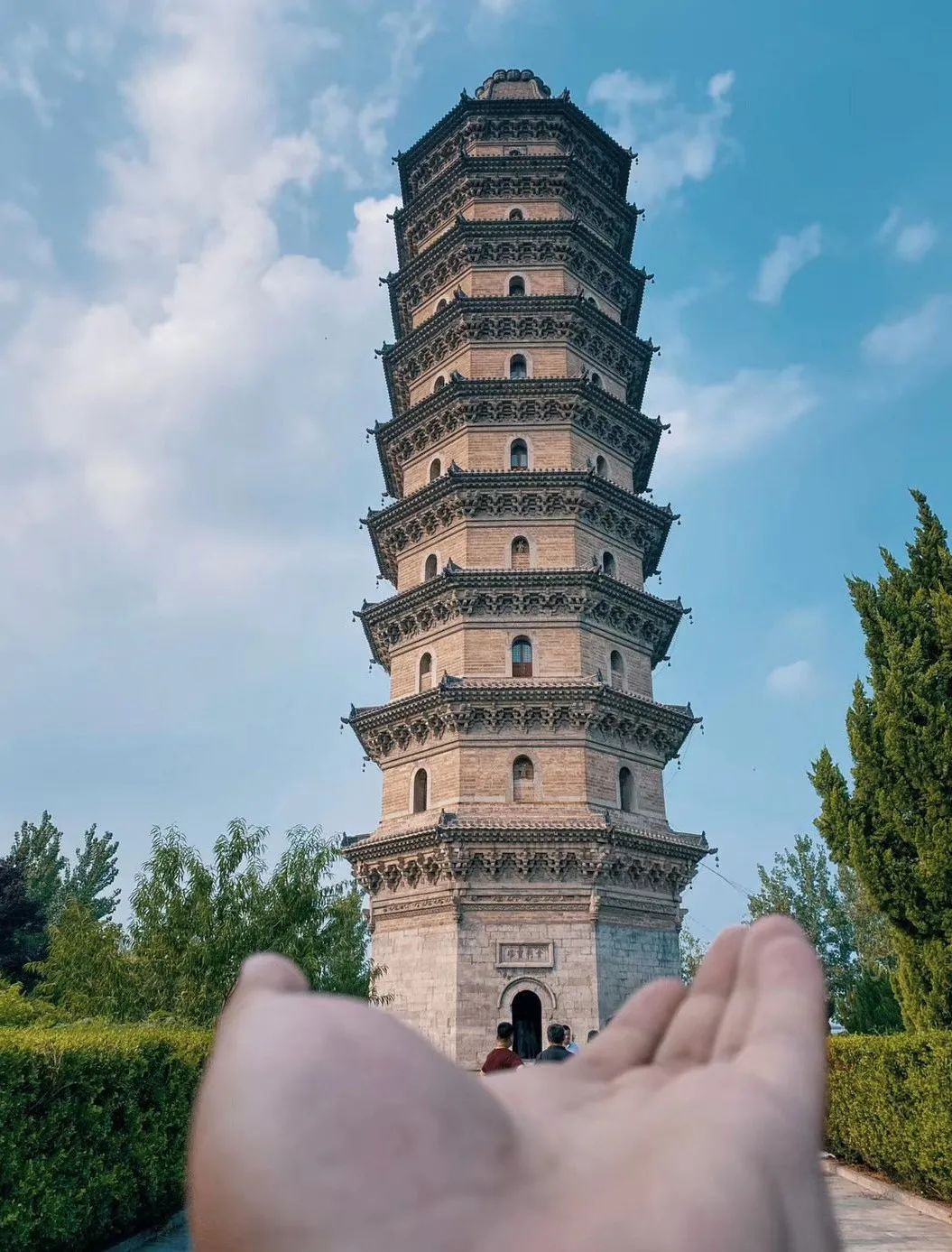 这座宝塔始建于1611年,通体近垂直,仿木结构,十分醒目,塔内层层交错,每一层景色都不一样,人们在登临此塔时,犹如在欣赏一曲恢宏的交响乐,戏剧性变化的空间带给人美的享受!