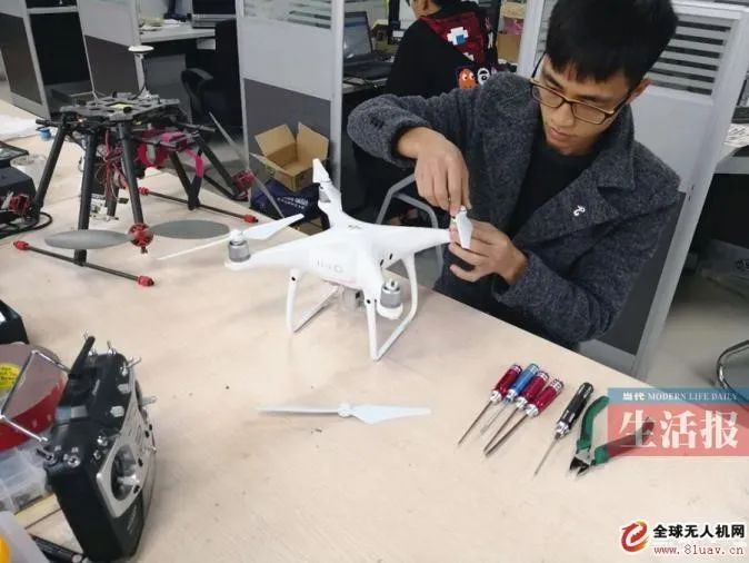 在2014年大疆向市场推出消费级航拍机型之后,无人机几乎是一夜之间就飞进普通市民家里了。可是,买的人多了,维修的问题也就随之出现了。虽然厂家都提供了售后维修服务,但大多只有1年保修期,而且维修成本也相对较高。特别是一些当地无法解决的难题,要返厂维修,一来一回可能要等上1个月。“渐渐地,越来越多的人来找我解决关于无人机的各种难题”,黄冠霖说。送到黄冠霖手上的飞机,基本上已经是惨不忍睹。他只能仔细排查整台飞机,看哪个设备还能使用,哪些部位需要修复,而哪些只能彻底换掉。排查之后还需进行反复测试、调控,稳定性是最为关键的一个测试步骤,稍有差池都会影响到无人机的稳定飞行。