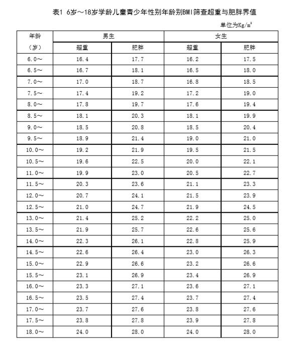 根据标准《学龄儿童青少年超重与肥胖筛查》,我们可以通过测量孩子身高体重,计算BMI,然后根据孩子的年龄性别,查表来判断孩子的体重是否超标。