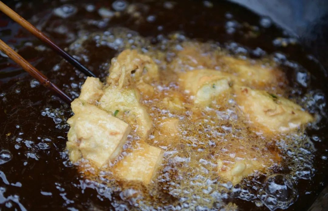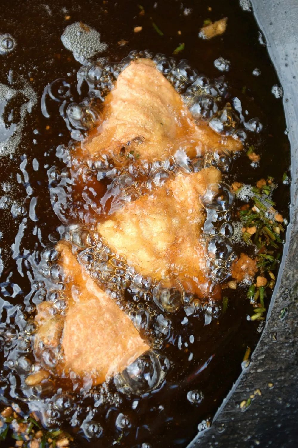 刚炸出来的豆腐角会有点烫,但看着就觉得胃口大开,建议尽快吃,不然在空气中搁置太久,就会失去那种酥脆的口感。美食当前,这个时候就不必考虑太多“上火”“热气”的问题啦。