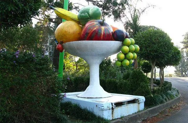 新南威尔士州有大香蕉、大鳄梨、大草莓,那我昆士兰洲还有大菠萝、大芒果和大橘子呢,他们还把一个巨大的果盘放在马路边,老艺术家寻思着这就是“望梅止渴”的用意吧。