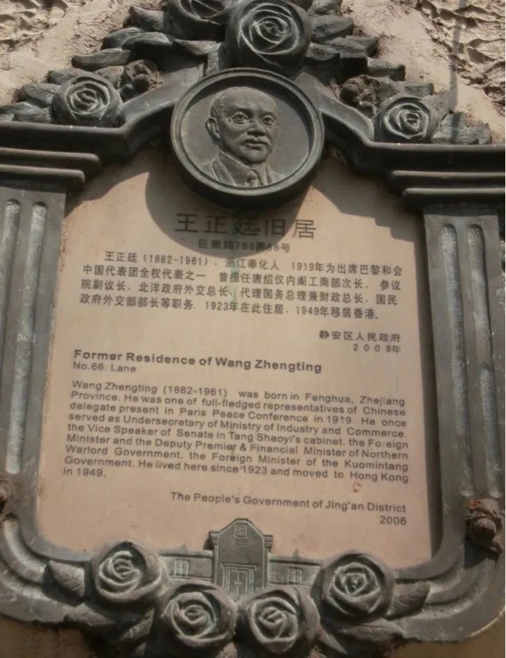 在巨鹿路786弄光华里66号门旁的墙上,有一块由静安区人民政府于2006年立的,用水泥浇铸带头像的石碑。碑文用中英文雕刻,是这样写的: