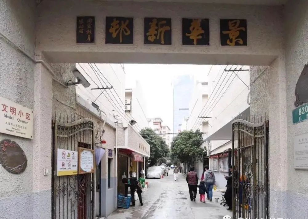 小时候跟姆妈出去碰到下雨,就叫辆人力三轮车载我们回家,只要和踏三轮车师傅讲“到巨鹿路景华新邨隔壁弄堂”就可以了,可见景华新邨具有地标作用名声在外,实际门牌是巨鹿路820弄。此地基原是浙江鄞县望族周家私产,在清末民初由周家后人、房地产大亨周湘云在此建成私家花园叫学圃。1937年他从周家花园内划出南面一部分建成新式里弄住宅,因花园风景华丽而名景华。