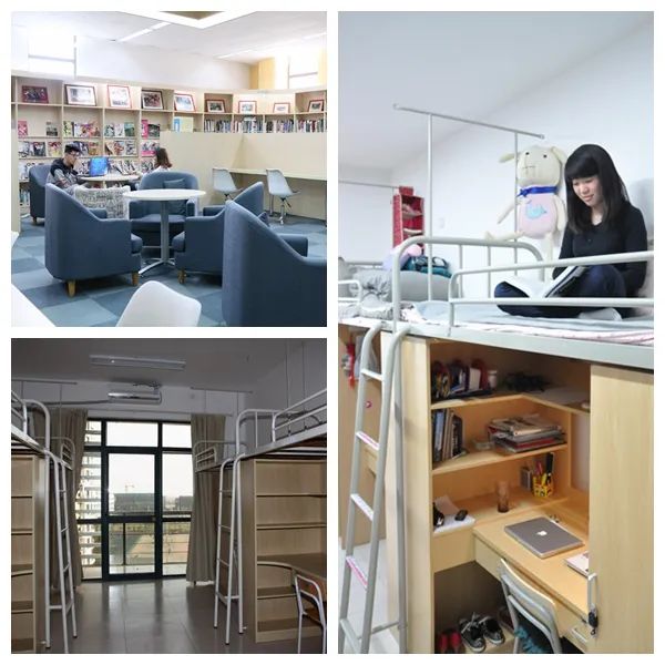 学生公寓园林化、生态化、人文化、社区化,均为四人间,上床下桌,空调、热水器、独立卫浴、阳台、有线无线网络一应俱全,24小时不断电,每栋楼配备开水房、洗衣房。餐饮方面,除区内学生食堂,周边有文星、文荟、文萃、翰林、独墅湖等五大生活广场,拥有肯德基、麦当劳、星巴克、老娘舅、85°C等各类餐饮机构近300家。