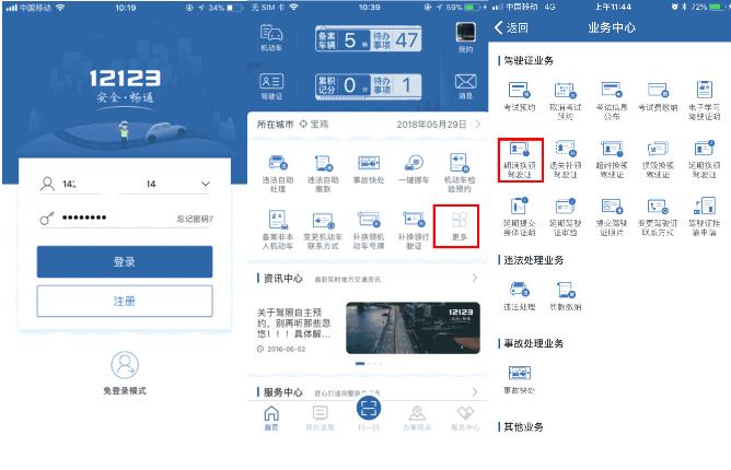 登录"交管12123"APP后,通过【业务中心】→【期满换领驾驶证】,进入期满换领驾驶证业务流程。