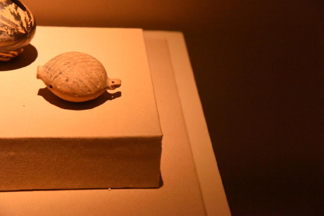 展出陶埙,四坝文化,火烧沟遗址出土来源:玉门市博物馆