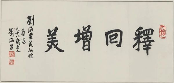 刘海粟 《楷书释回真美》 墨笔书法,1993年,46.5 X 98.5cm 刘海粟美术馆藏(“文字证源——刘海粟书法研究展”展品)