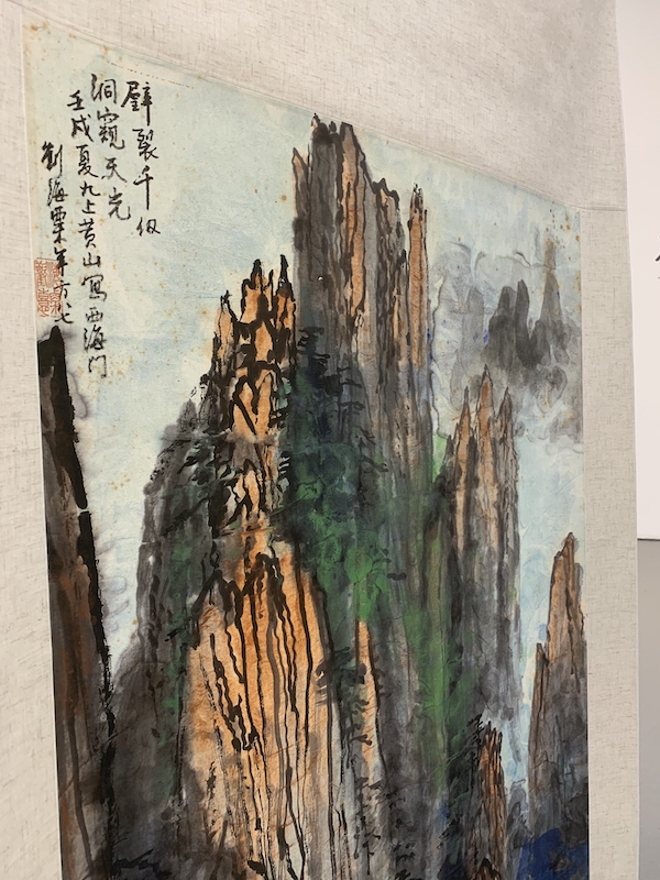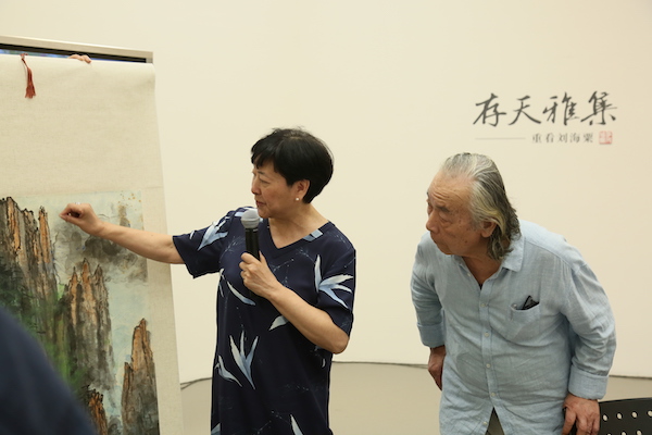 刘海粟之女刘蟾(左)从一件刘海粟先生“九上黄山”的作品“重看刘海粟”