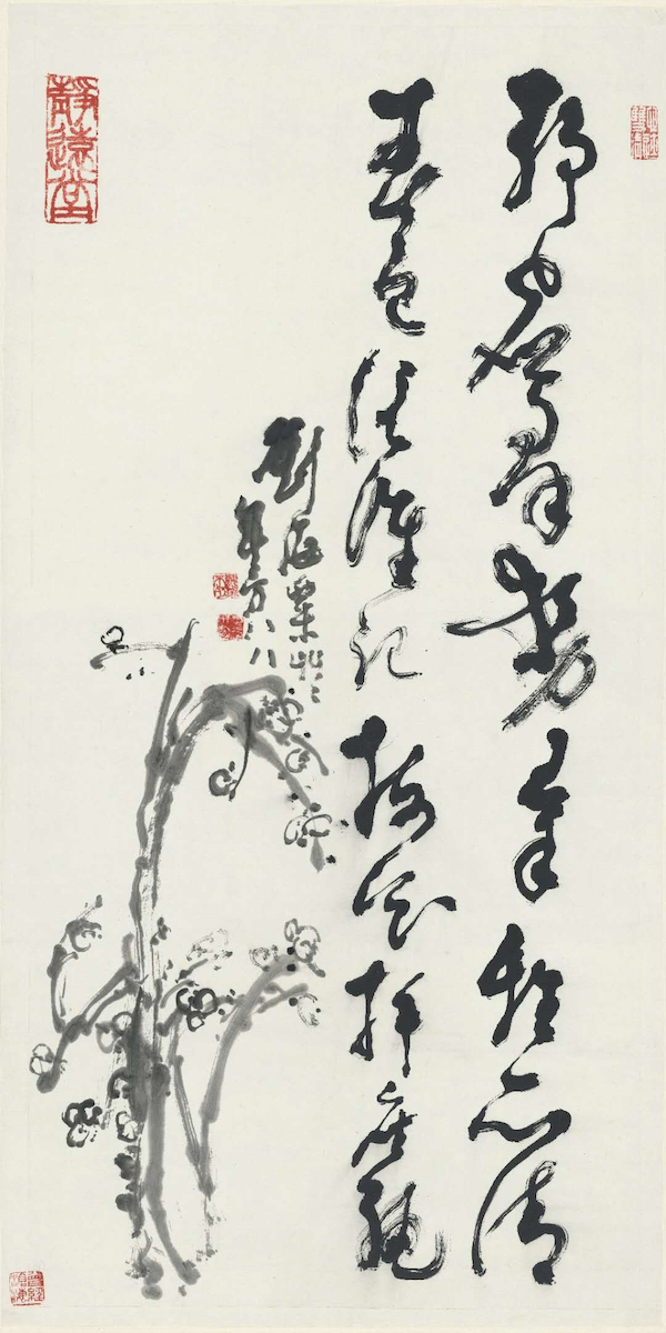 刘海粟《狂草梅花》 纸本墨笔 115 X 57.5cm 1983年 刘海粟美术馆藏(“文字证源——刘海粟书法研究展”展品)