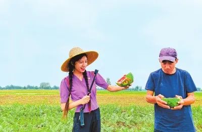戴着宽檐草帽,扎两个麻花辫,麦小登拍了拍身后的一车瓜,捧起手里的西瓜吃了一口,最美“瓜二代”露出了醉人的微笑。
