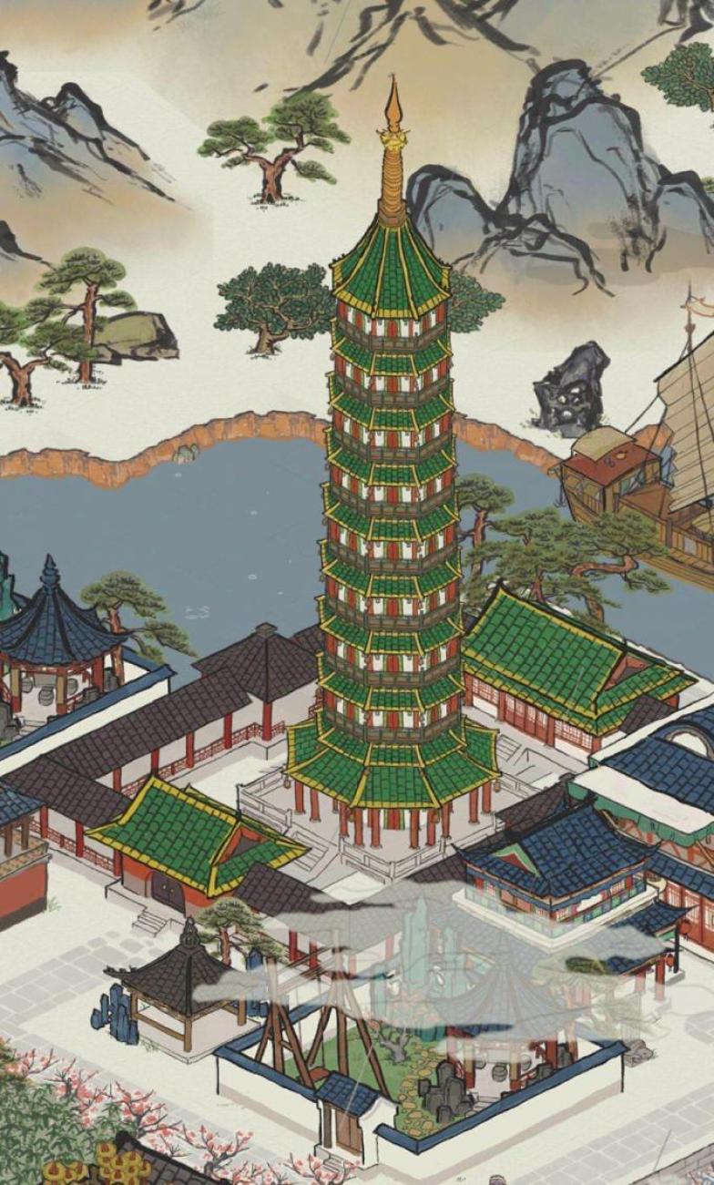 《江南百景图》中大报恩寺琉璃塔立于应天府西北