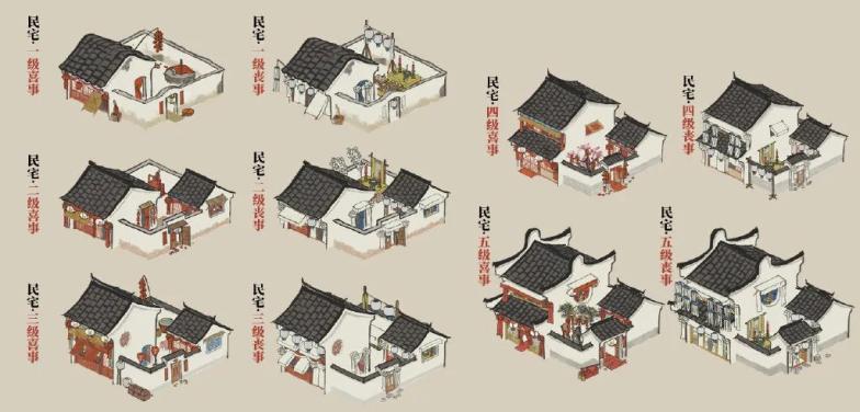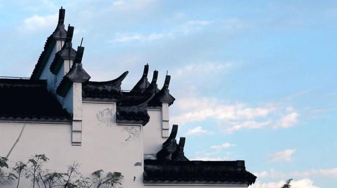 建筑外墙多用白色建筑粉墙黛瓦,颜色素雅