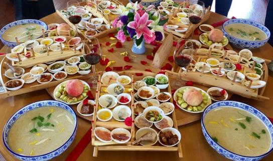 羊八碗 图源:“微曲靖”微信公众号→昭通昭阳区(参观昭通市博物馆非遗展;品尝油糕饵块、荞皮稀豆粉、酸辣饺面、酸汤凉粉、熏肉燃面、春饼、清真牛干巴、牛蒸蒸、半边锅粑粑、天麻汽锅鸡、汤爆肚尖、酥红豆、洋芋全席宴、昭通圆子、金钱火腿、蹄花米线、连渣闹等传统特色美食;体验昭通酱、张蝴绵、月中桂绿豆糕、竹编土陶、剪纸香包制作技艺,欣赏彝族月琴歌舞等)。