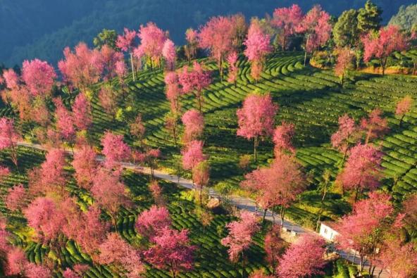 无量山樱花谷 大理州委宣传部供图→临沧云县(游览澜沧江百里长湖旅游区,品柴氏手撕鸡)→临沧临翔区(中山竹艺馆体验竹编制作技艺、品临翔区普洱茶;参观碗窑村龙窑,体验陶器制作;游南美乡万亩草山,参观南愣田拉祜族传统文化生态保护区,体验佤族鸡枞陀螺,欣赏拉祜族葫芦笙舞,品尝拉祜美食,感受拉祜民俗风情)