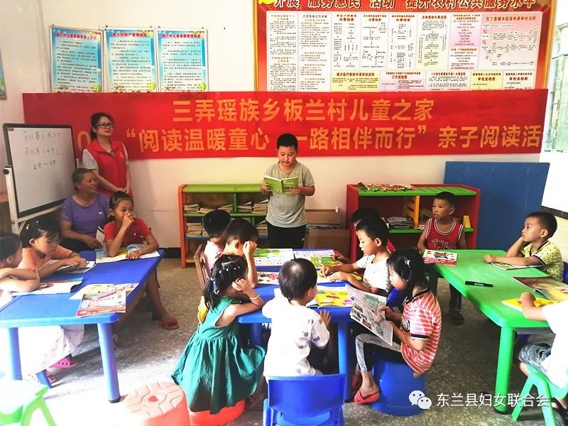 在板兰村“儿童之家”,由大学生西部计划志愿者主讲,让孩子们精心挑选自己喜欢的读物,认真阅读,然后选择一篇自己喜欢的故事读给其他的小朋友们听,同时在家长的陪伴下共同阅读,让孩子们用心感受父母养育子女的艰辛,操持家庭的劳苦,逐步形成孝敬长辈的良好品质。大学生西部计划志愿者通过引用一个个深动的故事,采取提问互动等形式,让家长明白与孩子沟通的重要性,同时分享到了读书的乐趣。