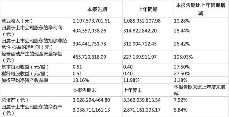 财报显示,涪陵榨菜在2020年上半年实现营收11.98亿元,同比增长10.28%,归属上市公司股东的净利润4.04亿元,同比增长28.44%,归属于上市公司股东的扣除非经常性损益的净利润约3.94亿元,同比增长26.42%。