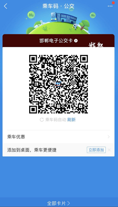 乘客只需在支付宝内领取“邯郸电子公交卡”