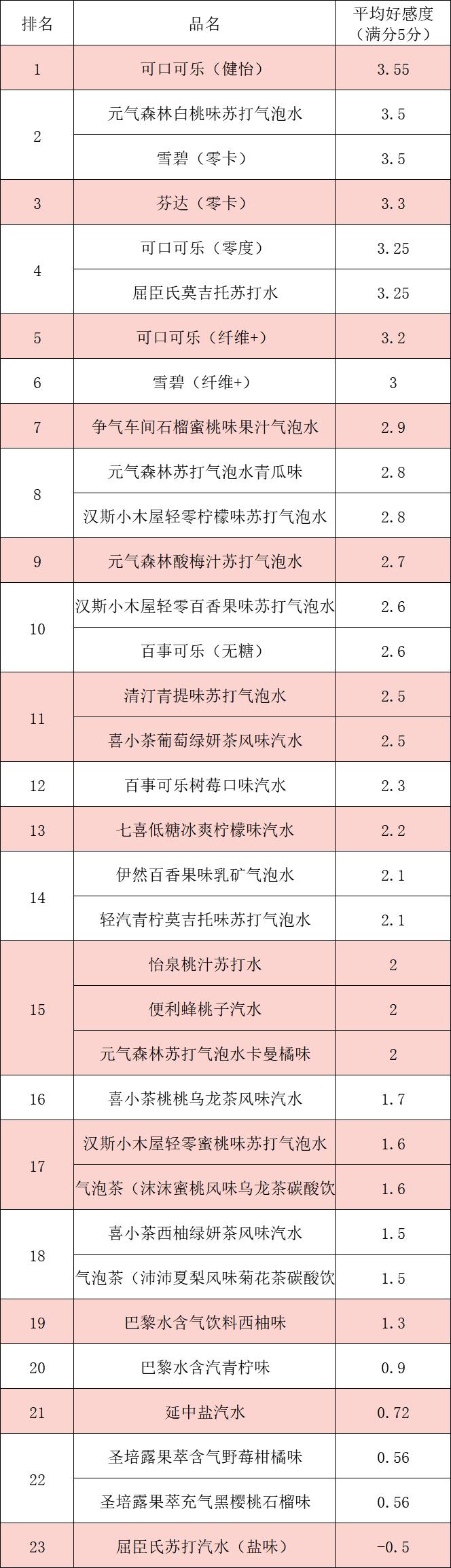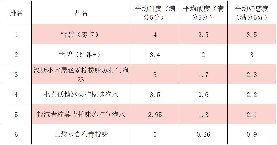 从这个表来看,承包了倒数5名的气泡水,要么是几乎没什么味道的,要么就是“可盐可甜”的。