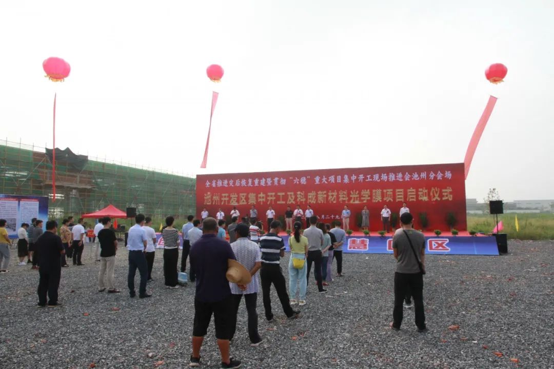 8月29日上午,全省推进灾后恢复重建暨贯彻“六稳”重大项目集中开工现场推进会池州分会场活动在池州开发区池州科成新材料开发有限公司光学膜研发制造项目现场举行。市委常委、常务副市长郭浩宣布集中开工令,池州开发区党工委书记、管委会主任程国清出席活动。