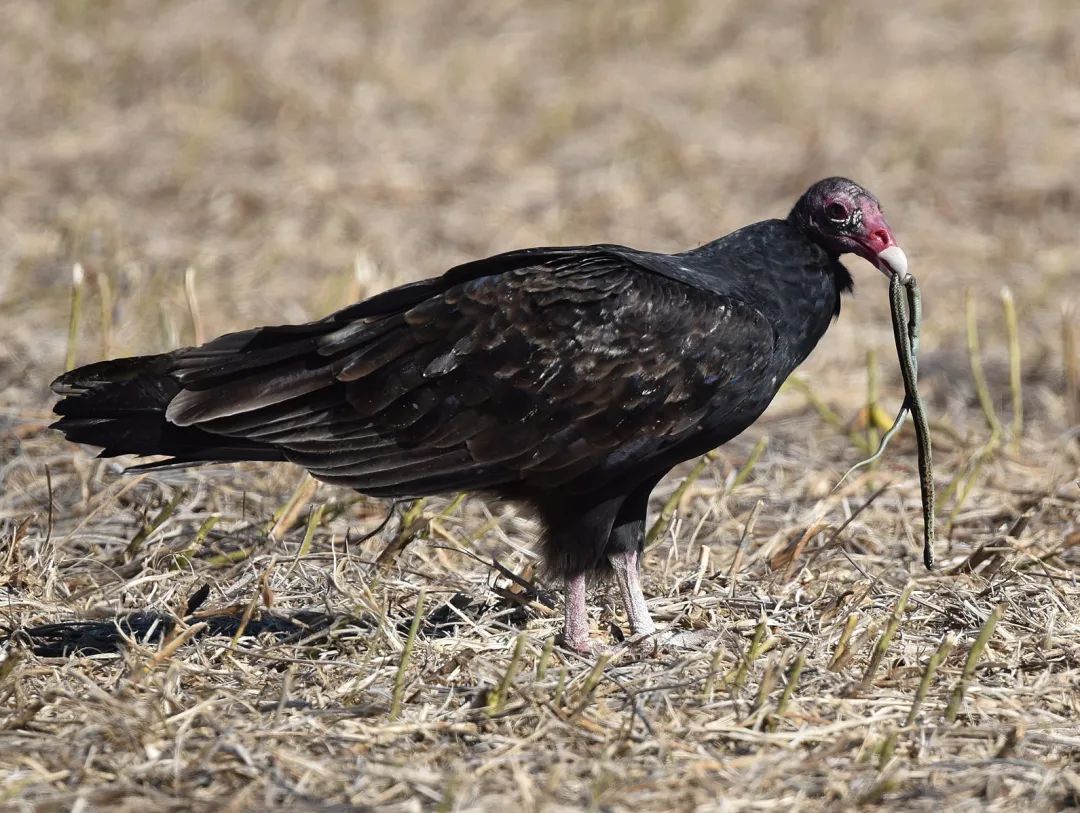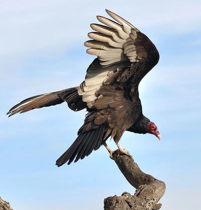 如果我们默认这场“肉雨”是真实事件,对它最“靠谱”的一种解释是,当时有一群美洲鹫(也叫新大陆鹫)飞过,来了个“集体卸货”。美洲鹫有个臭名昭著的习惯,受到惊吓时会吐出胃内容物,以减轻体重,方便快速开溜。今天的主角就是一种美洲鹫——红头美洲鹫(Cathartes aura)。