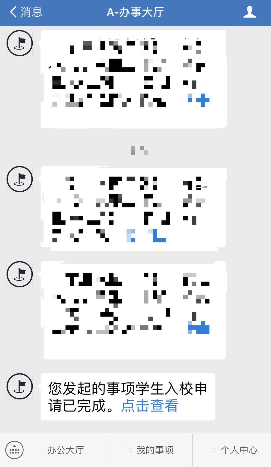 2.学院审核入校申请由学院辅导员和学院负责人进行审核,审核完成后,学生入校申请流程完成。