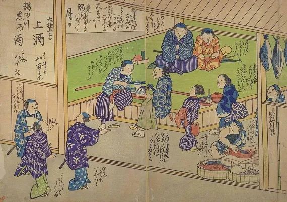 当时最爱到酒屋喝酒的人,主要是做买卖的小贩、车马货运业的工人或者是武士家的仆人等等,这些人通常都靠劳力谋生,到酒屋喝酒是他们为数不多的休闲活动。