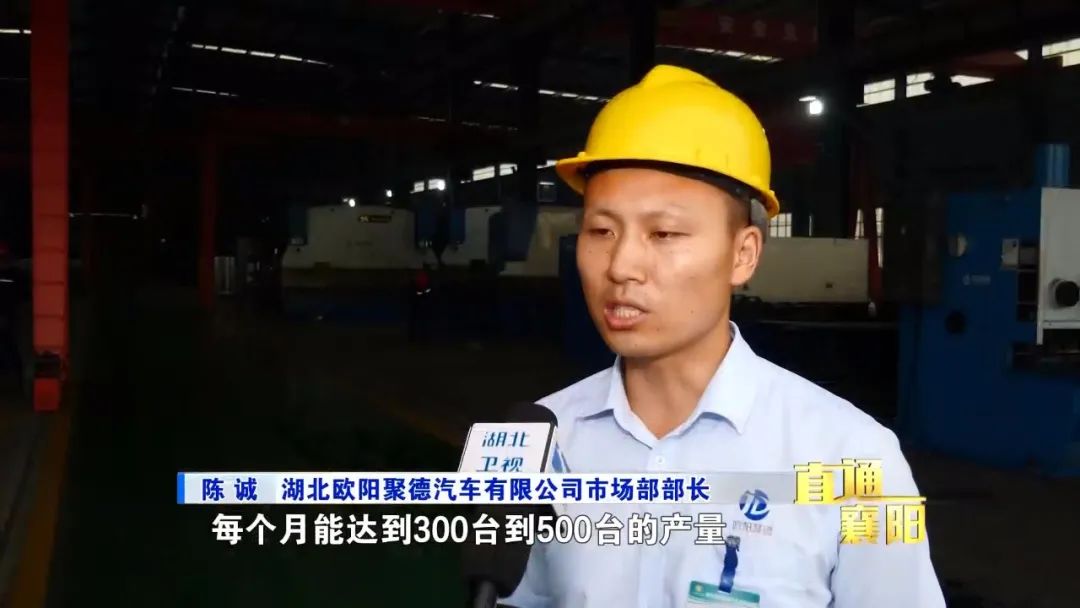 湖北欧阳聚德汽车有限公司市场部部长 陈诚:今年技改之前,我们的产量一个月上顶也就150台到200台之间,当我们技改之后,每个月能达到300台到500台的产量,下一步我们将达到500台到1000台的产量。目前,公司研发生产的“襄汽牌”和“楚源牌”汽车,已进入国家汽车产品《公告》目录,可实现年销售收入11亿元以上。