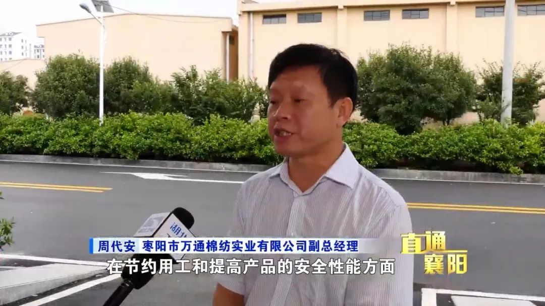 枣阳市万通棉纺实业有限公司副总经理 周代安:去年我们对智能纺纱车间5万锭的生产规模进行了紧密纺品种的改造,在节约用工和提高产品的安全性能方面都起到了很好的作用。仅在今年,枣阳万通棉纺公司就投入1000万技改资金,通过信息化、自动化、智能化改造,将传统装备制造工艺升级为智能制造车间,提升了生产效率和产能,激发企业增长活力,带动工业产业提质增效,实现了企业转型升级、降本增效的目的。