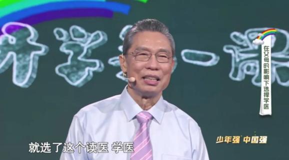钟南山在今年《开学第一课》的讲台上,首先为同学们讲述了自己名字的来由与含义。这一给人如大山般坚毅之感的名字,有力量的承载并诠释了钟南山的人生追求,而钟南山也做到了真正的“人如其名”。出生于1936年的钟南山,生长在一个战火纷飞的年代。那时南京经常遭遇日本飞机轰炸,钟南山有一次被困在了被炸毁的房子中,外婆冒着生命危险才把他从瓦砾堆中救了出来。战争年代的成长背景,生与死的考验,让钟南山从很小就懂得了生命的脆弱与宝贵,立志报国的信念也深深烙印在他的心中。