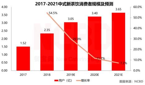 NCBD数据显示,2019年中式新茶饮市场规模达到754亿元,预计到2021年突破1000亿元。