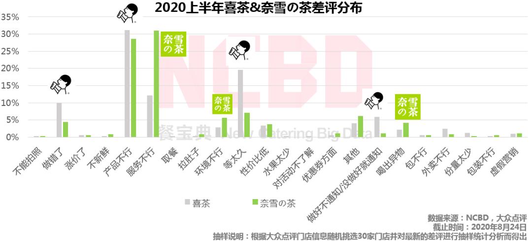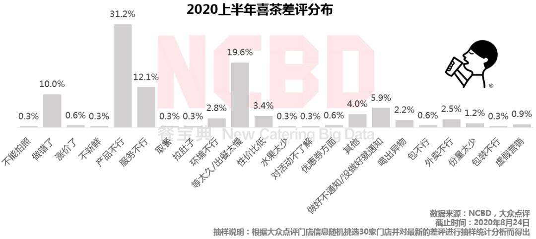 (1)服务不行差评比例高达31%,高于喜茶;