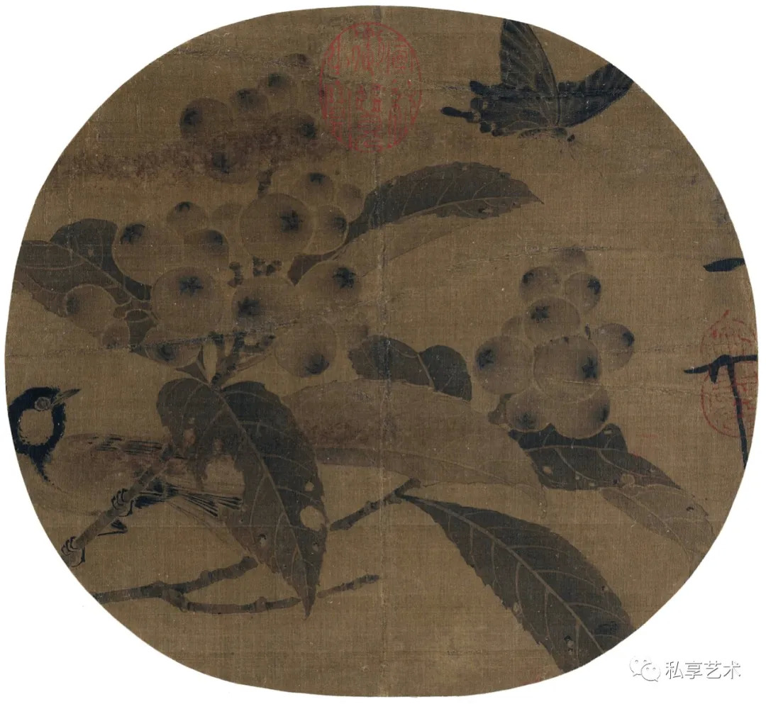 宋赵佶《枇杷山鸟图》绢本墨笔 纵22.6cm 横24.5cm北京故宫博物院