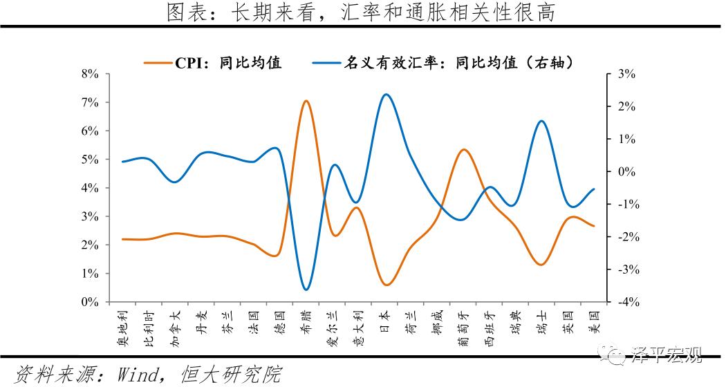 通胀水平:根据购买力平价理论,长期中物价相对稳定的国家货币趋于升值。全球主要经济体的实证经验证明,长期中,通胀维持在较低水平的国家汇率表现强劲,高通胀的国家货币普遍弱势。