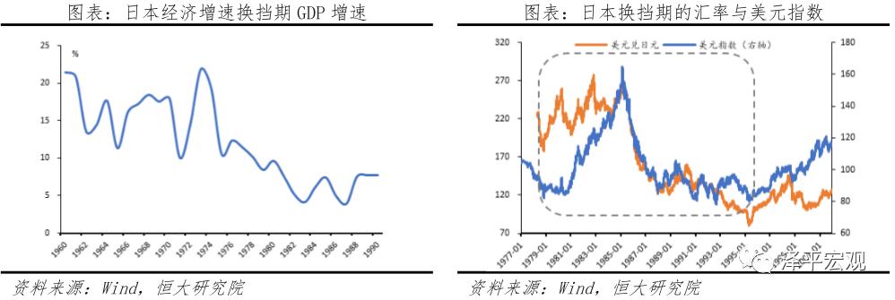 期间日本经济增速虽然下台阶,但日元仍表现强劲,名义有效汇率升值约60%。有趣的是,日本经济增速换挡期后,日元升值速度一点都未减缓,日元在1978年以后继续快速升值,直到1995年,升值才告结束。