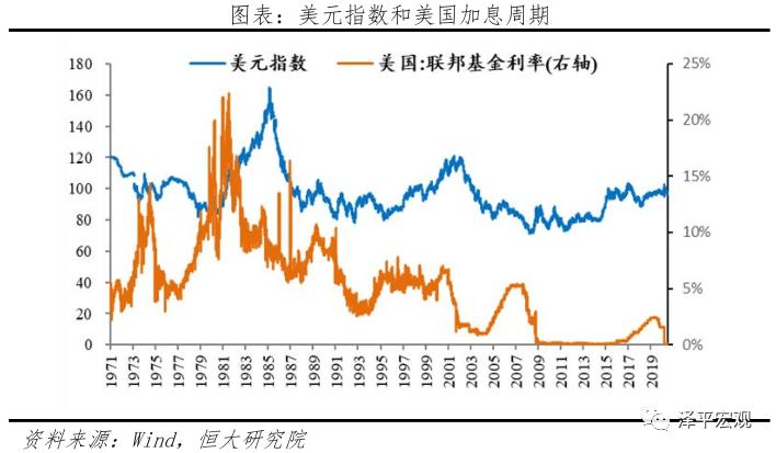 3.5 美元是影响各国汇率的重要外部因素美国加息不等于美元升值。历史告诉我们,除去本轮之外,美国6次加息周期,只有2次带来明显的美元升值周期。主要原因在于,美元是一个相对价格,取决于其他国家的表现,另外,利率也并非影响美元的唯一变量,美国长期贸易逆差,天然有贬值动力。