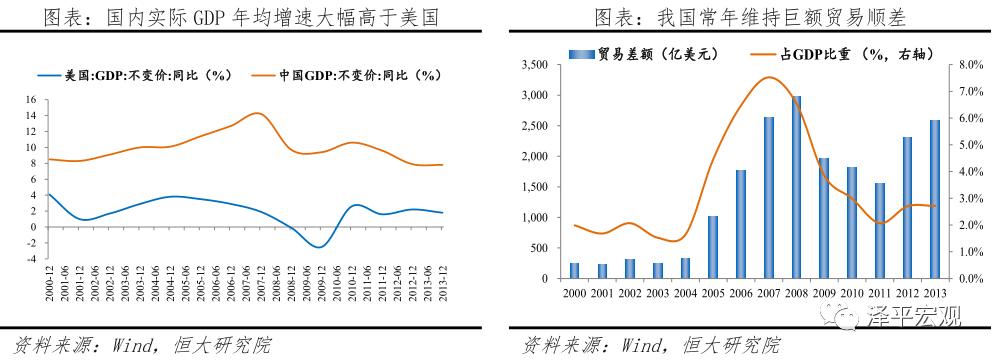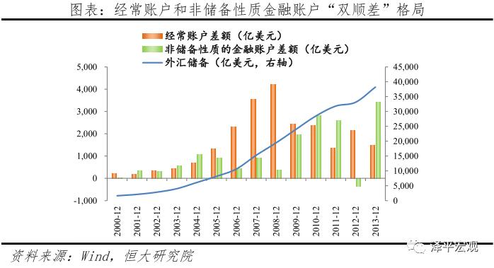 经常账户、直接投资两项贡献巨额资本净流入,“双顺差”格局长期持续,推动人民币升值。我国国际收支平衡表中经常账户和非储备性质金融账户长期呈现“双顺差”格局,其中经常账户、直接投资两项的年均实现顺差3847亿美元,是贡献资本净流入的主力。2005年7月至2013年末,美元兑人民币汇率累计升值幅度达27%。