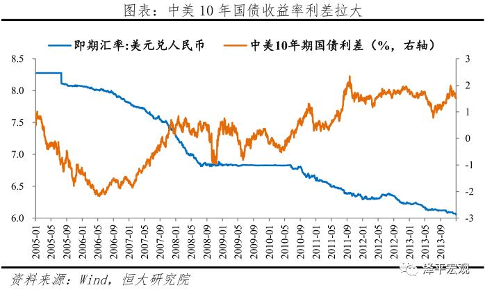 国内货币政策相对从紧,海内外利差拉大,吸引海外资本,热钱涌入。这一阶段,国内货币政策相对从紧,央行多轮升准升息,但全球金融危机后,美国长期实施量化宽松政策、维持超低利率水平,以刺激经济增长。2004年末至2013年末,中美利差从49BP大幅提升至151BP,吸引海外资本流入,对人民币汇率构成支撑。