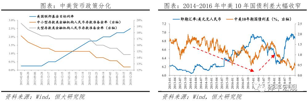 中美货币政策分化,国内连续降准降息,美联储进入加息周期,中美利差收窄。中国方面,国内经济下行压力加大,货币政策主要诉求转向稳增长,央行连续降准降息。美国方面,美联储开启货币政策正常化进程,2014年起退出量化宽松政策,2015年末步入加息周期, 2014年初至2016年末,中美10年国债收益率利差从151BP大幅收窄至56BP。