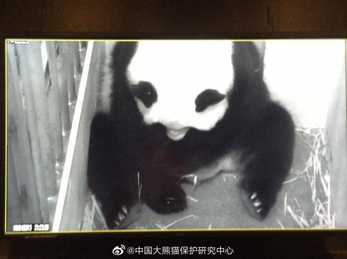 图为“美香”生产大熊猫“宝宝”时监控画面