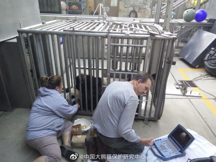 图为华盛顿动物园兽医为“美香”做B超