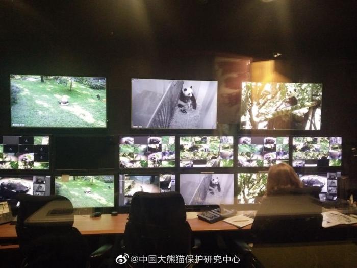 图为华盛顿动物园监控室,产仔期,工作人员对熊猫进行24小时密切监控