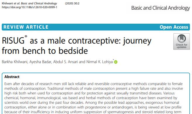 2.RISUG®as a male contraceptive:journey from bench to bedside.Basic Clin Androl.2020;30:2.doi:10.1186/s12610-020-0099-1