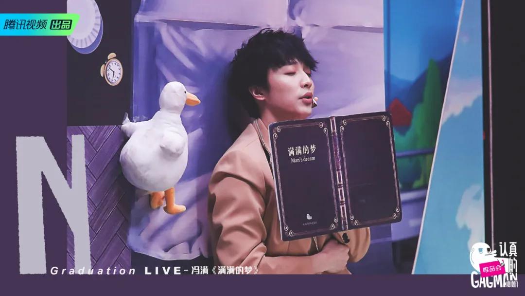 gagman们的特质成为节目形式最好的注脚,无论赛制如何变化都能快速反应。比如在模拟结业典礼上,几位gagman兴之所至突然相互交换身份,现场砸挂反而成了高光时刻;此前因为道具表演失误,冯满就用一段道具复杂到极致的现场表演作为毕业演出。