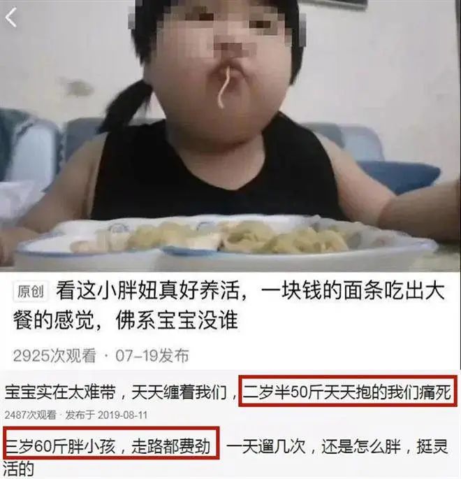 但她的父母依旧兴高采烈地发布着吃播视频,并且宛如宣布喜讯般不断吆喝着“即将突破100斤”。
