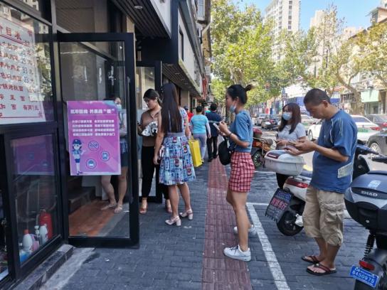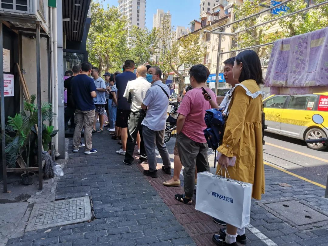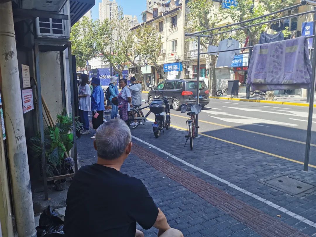 一位见惯排队世面的顾客阿姨不以为然:“今朝不算有啥人呃。老早,队伍要转三圈。”