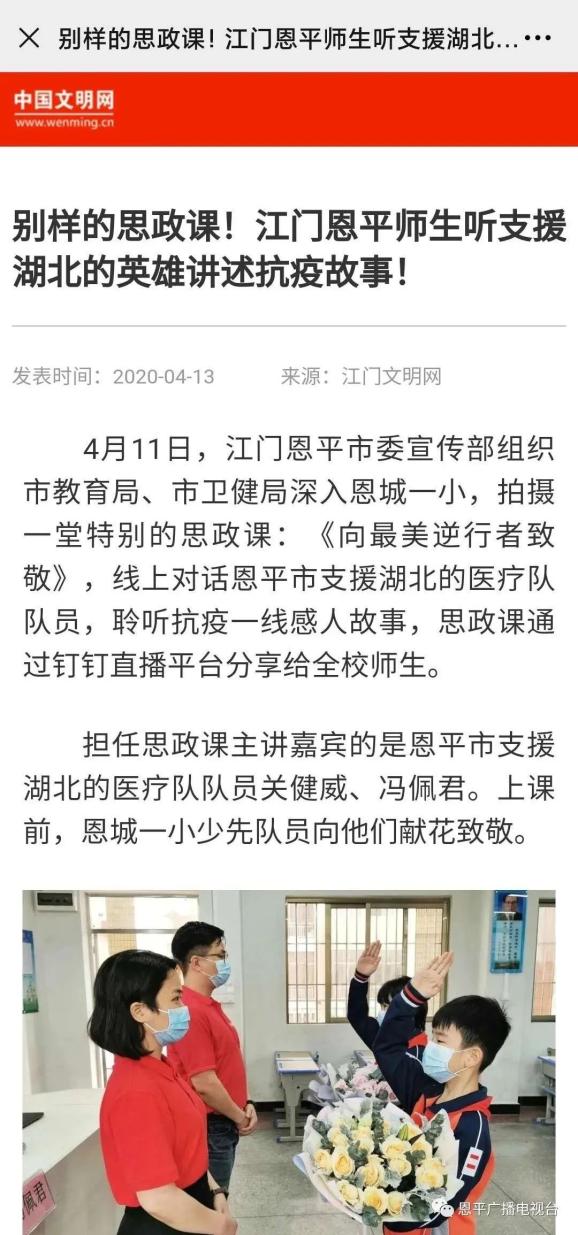 恩平支援湖北医疗队队员为学校师生讲思政课登上中国文明网