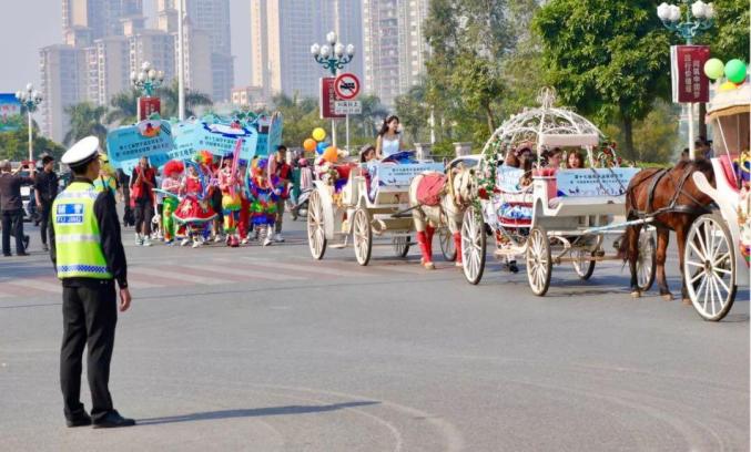 健走马拉松途中为市民送上文化节目 李渊深 摄