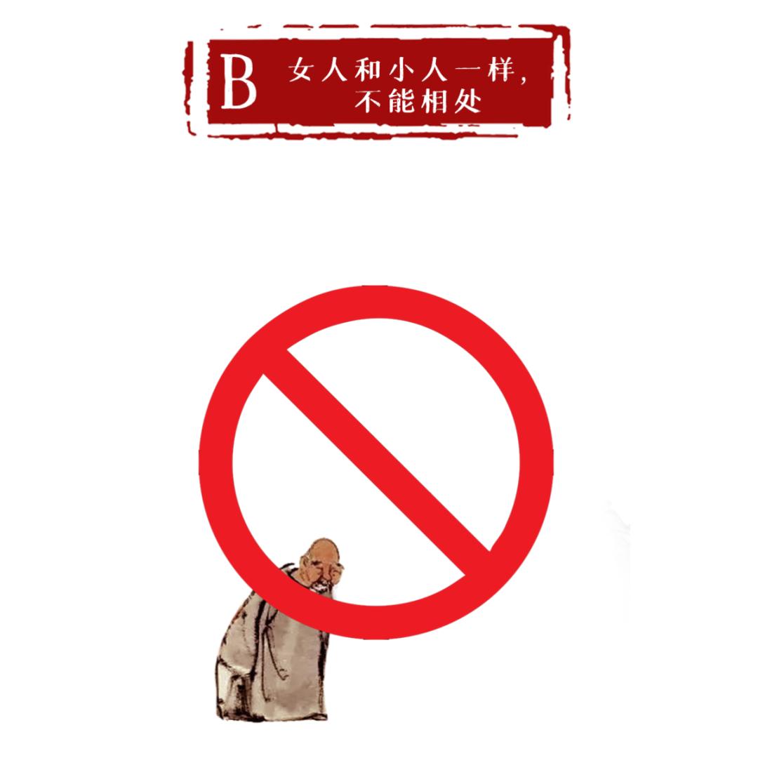 解析:此句出自《论语》,全句为:“唯女子与小人难养也,近之则不逊,远之则怨。”原文是说女人亲近了会蹬鼻子上脸,疏远了就要埋怨你,指的是女人的心太难琢磨,并没有歧视女性的意思。